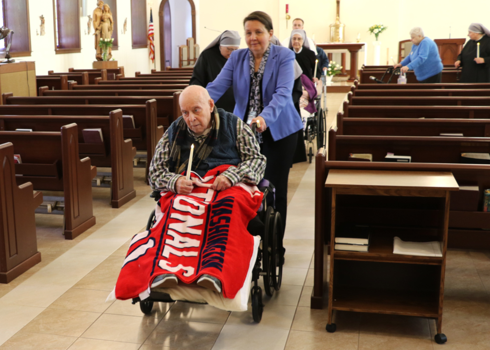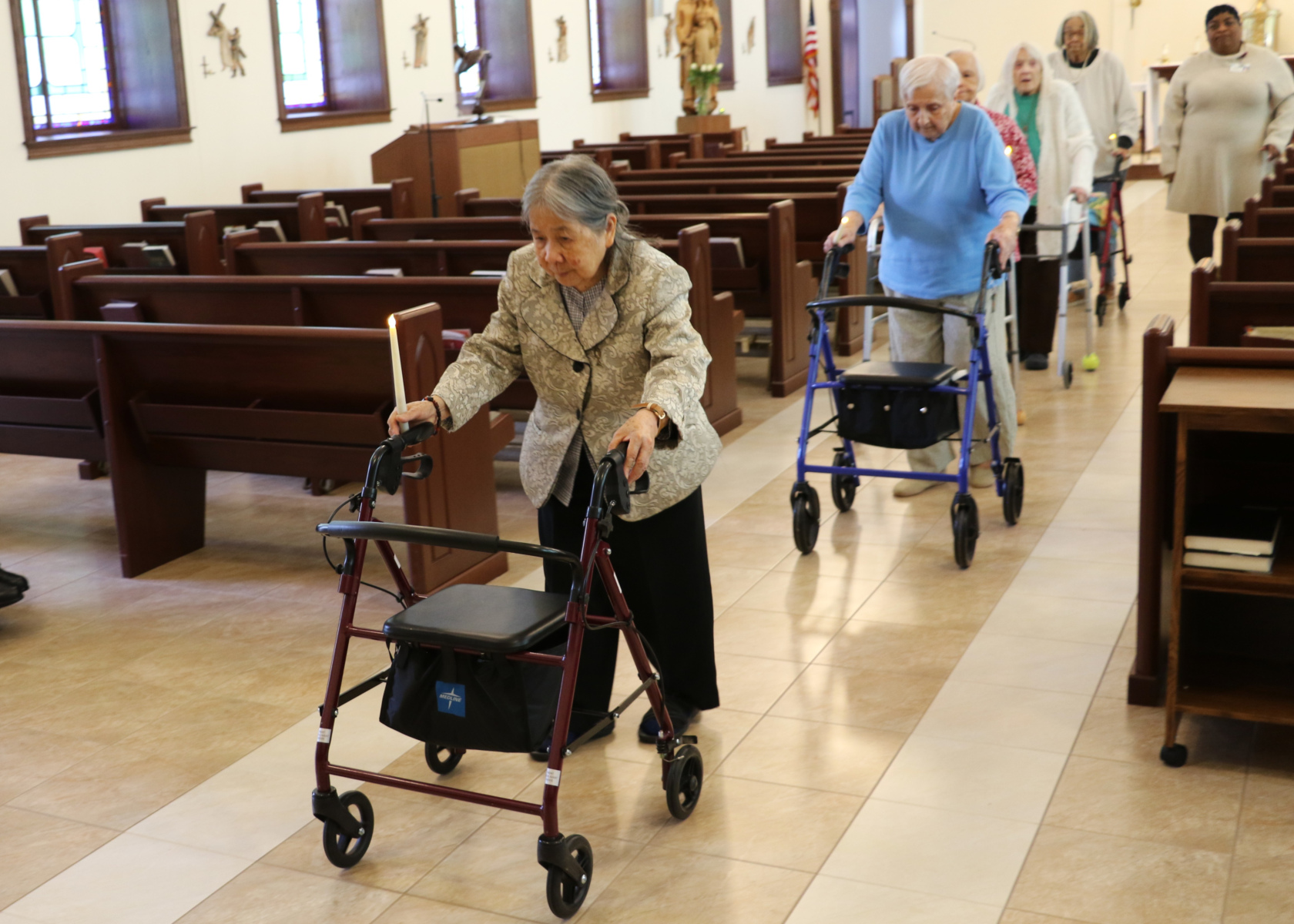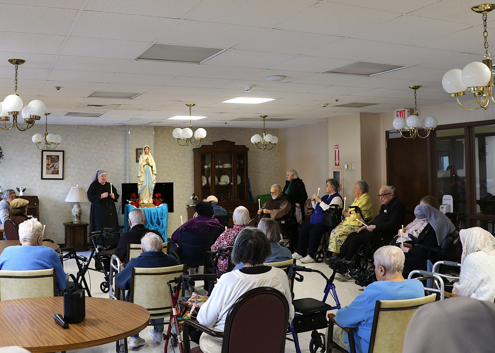 On February 11, the Feast Day of Our Lady of Lourdes and the Church’s World Day of the Sick, our “little family” of Residents, Sisters, and staff gathered in the chapel for a candlelight Rosary and procession.